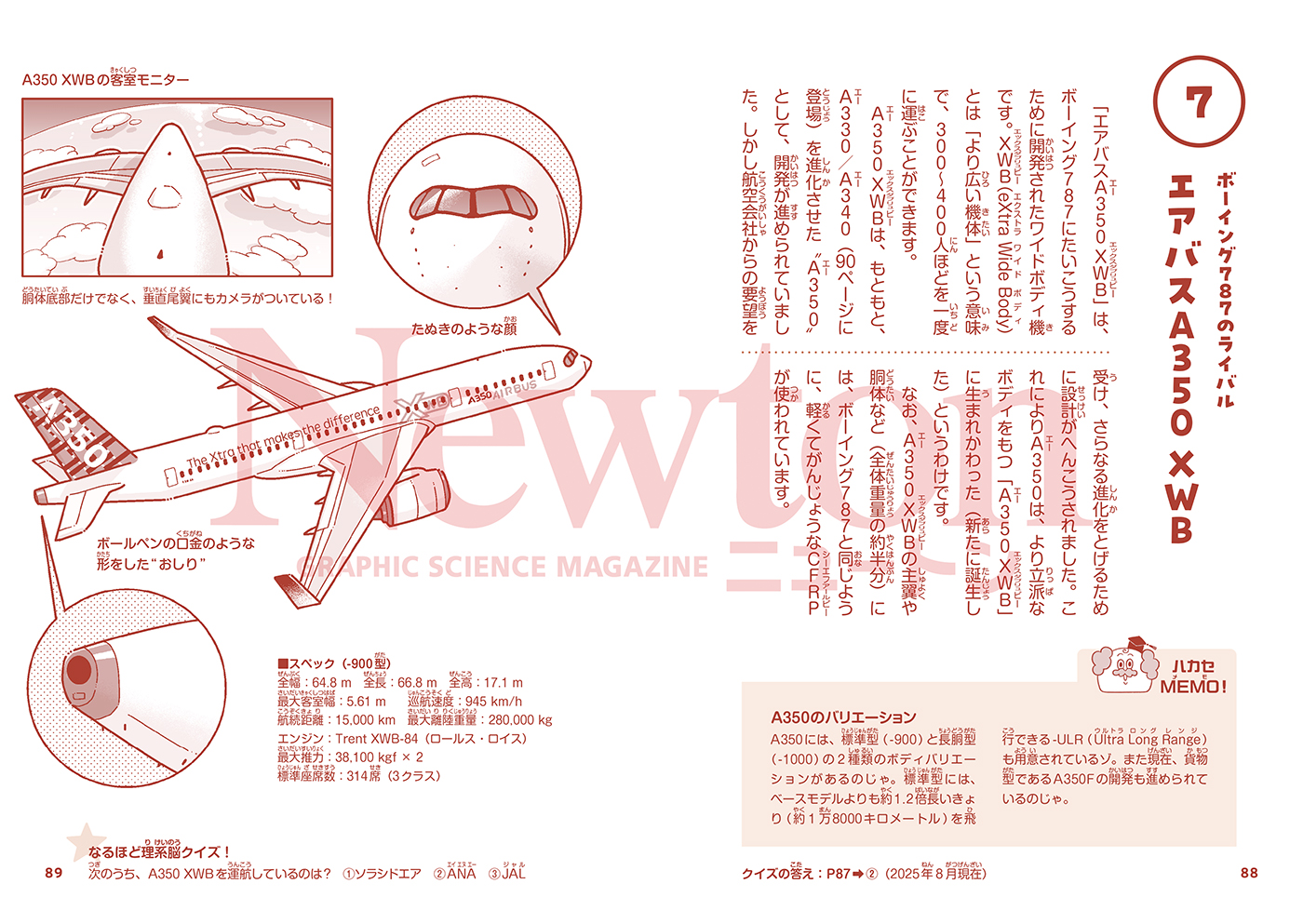 ボーイング787(ドリームライナー)/ボーイング777/ボーイング767/757/ボーイング747(ジャンボ)/ボーイング737/エアバスA380/エアバスA350 XWB/エアバスA340/A330/エアバスA320ファミリー/エアバスA220/ボンバルディアDHC-8/エンブラエルE170/E190/ATR42/72/海面を飛ぶ「ジェットフォイル」 ★ハカセの一言「 エアバス機には○○がない!?」 |