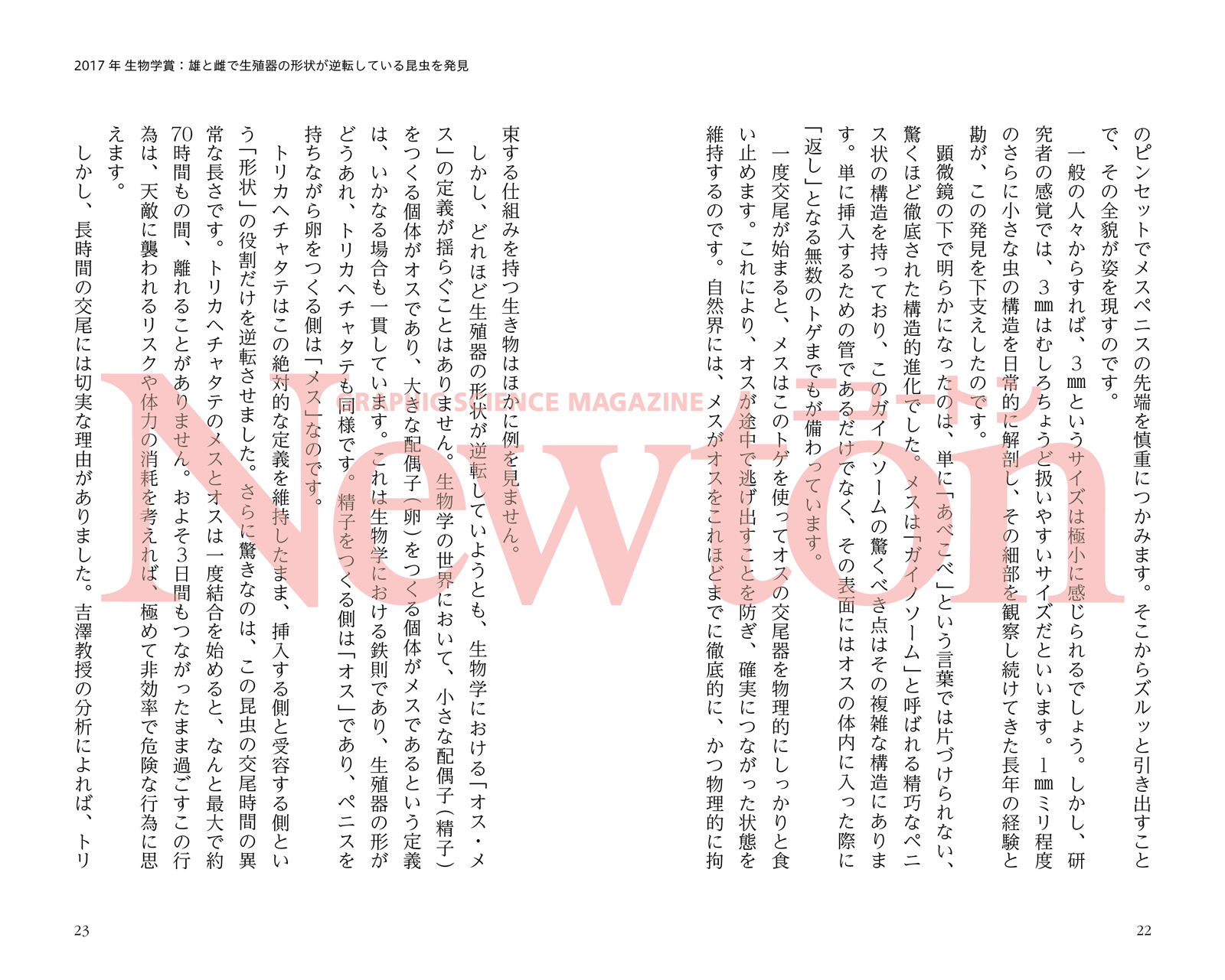 | 2017年 ⽣物学賞:雄と雌で⽣殖器の形状が逆転している昆⾍を発⾒ 2018年 医学教育賞:座位で⾏う⼤腸内視鏡検査 2019年 化学賞:5歳児が1⽇に分泌する唾液の総量を測定 2024年 ⽣理学賞:哺乳類の直腸からの換気(肛⾨呼吸)の発⾒ |
