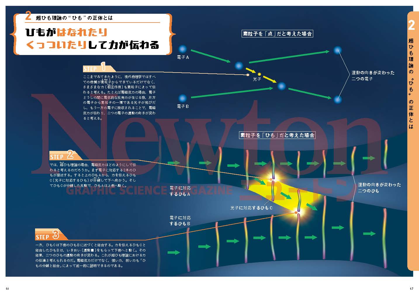 あなたの体も,宇宙を構成する星や銀河も,あらゆるものはすべて同じ"ひも”でできているかもしれない! とてもシンプルでわかりやすい文章ですが,超ひも理論を知らない人にとっては,思わず首をひねってしまうような話でしょう。