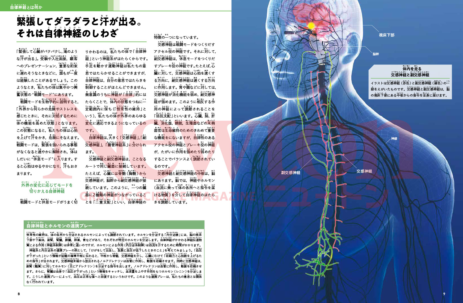 「なんとなく調子が悪い」「気分がすぐれない」。そのような不調は自律神経が原因かもしれません。自律神経は呼吸,心拍数,消化などの機能を調節する重要なシステムで,私たちの体は自律神経によって無意識のうちにととのえられているのです。 近年,自律神経に関する研究が進み,自律神経のはたらきの乱れが病気に対抗する免疫力にまで影響をあたえることがわかってきました。 本書では,自律神経とは何かといった基本から,くわしいメカニズム,ストレスに対処するさまざまな連係プレー,自律神経の乱れが引きおこす症状などを豊富なイラストと図表でくわしく解説していきます。疲労回復や体の調子をととのえる方法も紹介しました。本書を読んで,心も体も豊かな生活を手に入れてください。